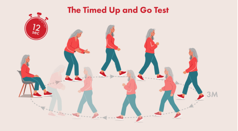 “If you can complete the test in less than 12 seconds, it’s a good sign your fall risk is low. But if your time is between 12 and 15 seconds or longer, especially if you’re over 60, this could indicate a higher risk of falling.”